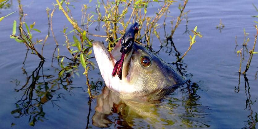 Weed growth proliferates in rivers, current reservoirs, and lakes as well. This is one of the few ideas on why to start your search here. Baitfish and bass will gravitate to weedy bays and pockets, where the water is cooler and highly oxygenated. Bass position themselves near irregularities in the weed bed, such as holes, pockets and points, laydowns, and junk piles. They can be taken on the surface with a weedless Baby Buzzbait™ frog or rat. Alternatively, by flipping or pitching a plastic worm or creature bait through the grass.